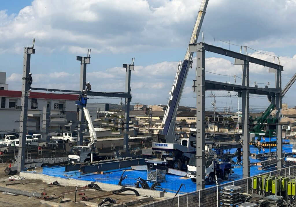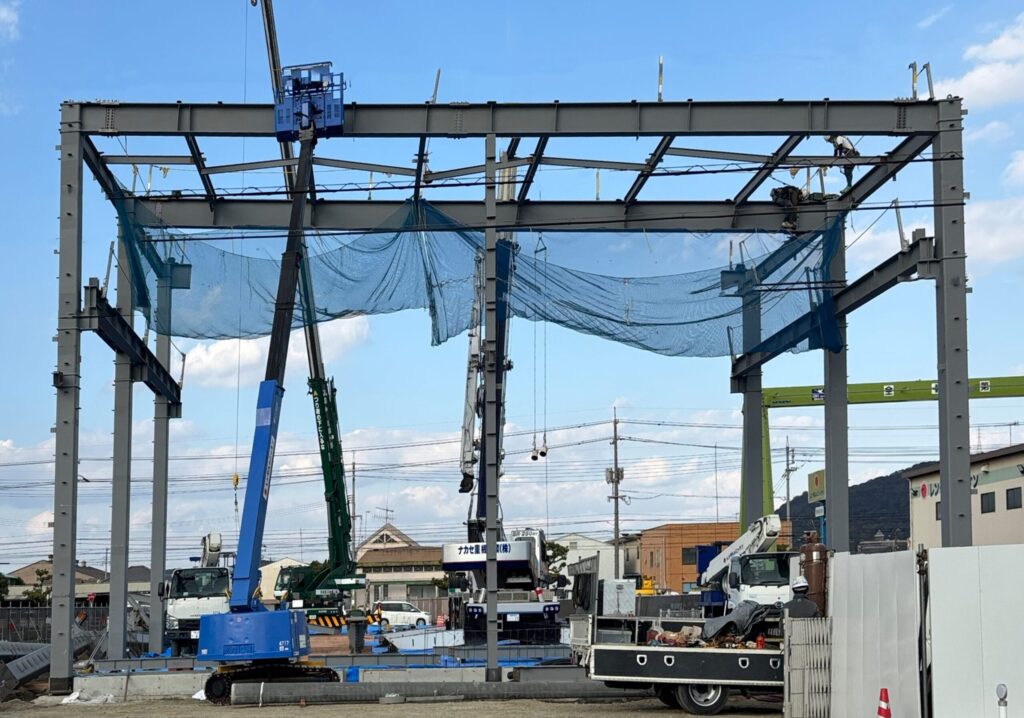 現在は 基礎工事が進み、建物の骨組みが少しずつ見え始めています。